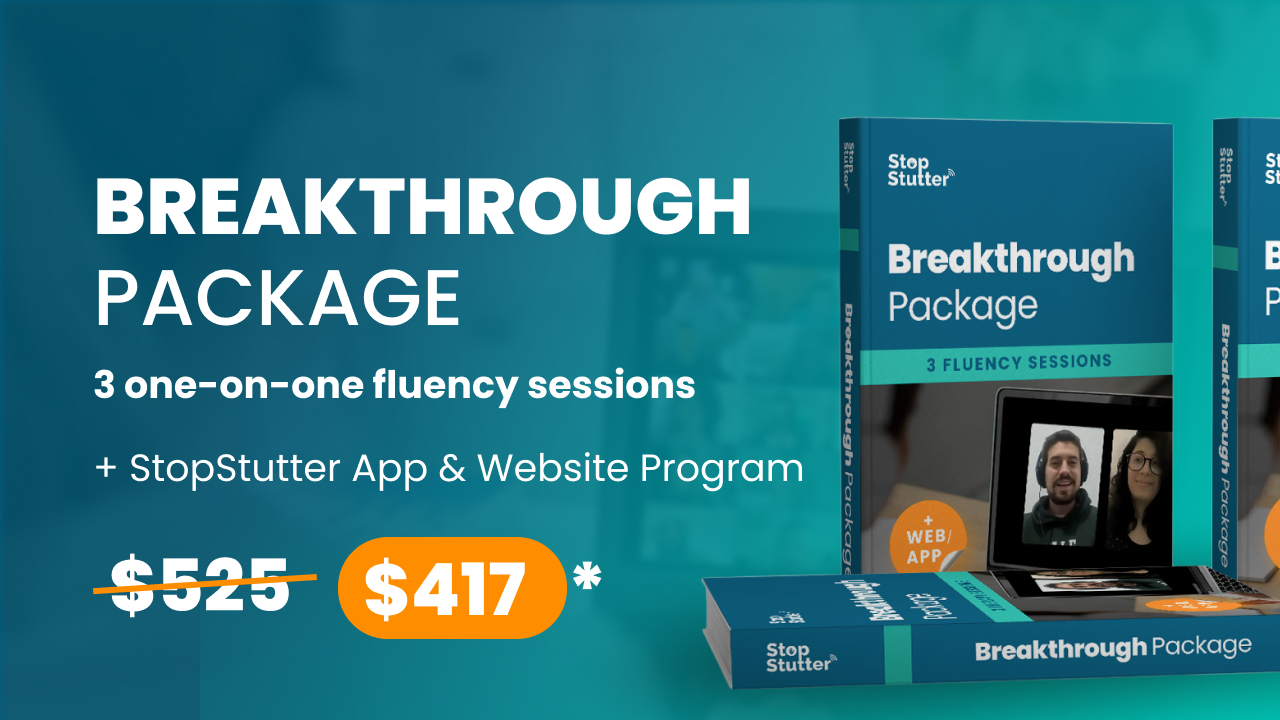 Packaged in 3 fluency sessions + 1 year subscription to the StopStutter web and app